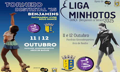 A EPAB organiza nos dias 11 e 12 de outubro, no Pavilhão da Escola Básica de Arco de Baúlhe, a Liga Minhotos Solo Dance e Pares de Dança e o Torneio Distrital de Benjamins, num fim de semana repleto de talento e emoção. Dois eventos que celebram a arte, a técnica e o entusiasmo dos jovens patinadores minhotos.