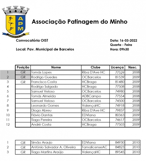 O Pavilhão Municipal de Barcelos, vai acolher o programa de observação, identificação e seleção de talentos (OIST) no dia 16 de Março de 2022, Coordenado pela direção técnica da Federação Portuguesa de Patinagem, com a colaboração da Associação de Patinagem do Minho!