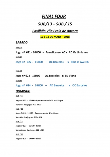 Nos dias 12 e 13 Maio vai decorrer a Final Four da Taça do Minho nos escalões Sub-13 e Sub-15 de Hóquei em Patins.
