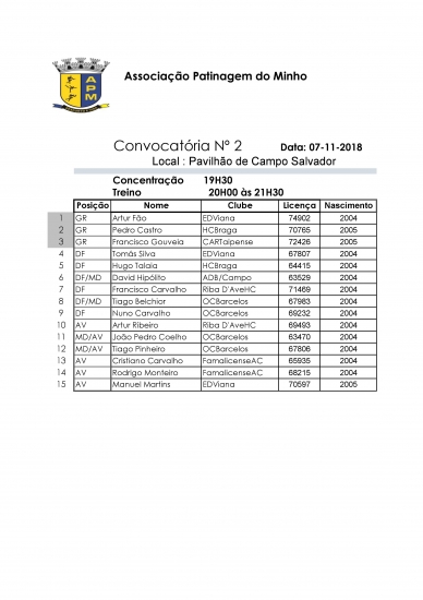 O Pavilhão de Salvador do Campo ( Barcelos) vai receber o segundo treino da seleção Sub 15 AP. Minho, no dia 07 de Novembro.