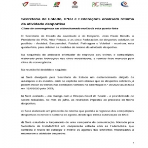 Secretaria de Estado, IPDJ e Federações analisam retoma da atividade desportiva
