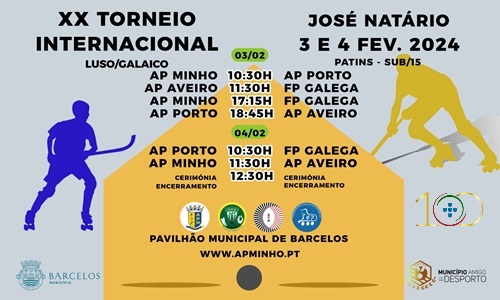 O Pavilhão Municipal de Barcelos, será palco do XX Torneio Internacional ( Luso/Galaico) José Natário, de Hoquei em Patins, em sub 15