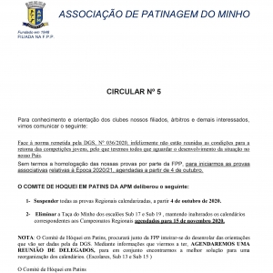 Dada a evolução da situação epidemiológica em Portugal, a Associação de Patinagem do Minho CANCELOU todos os jogos de formação